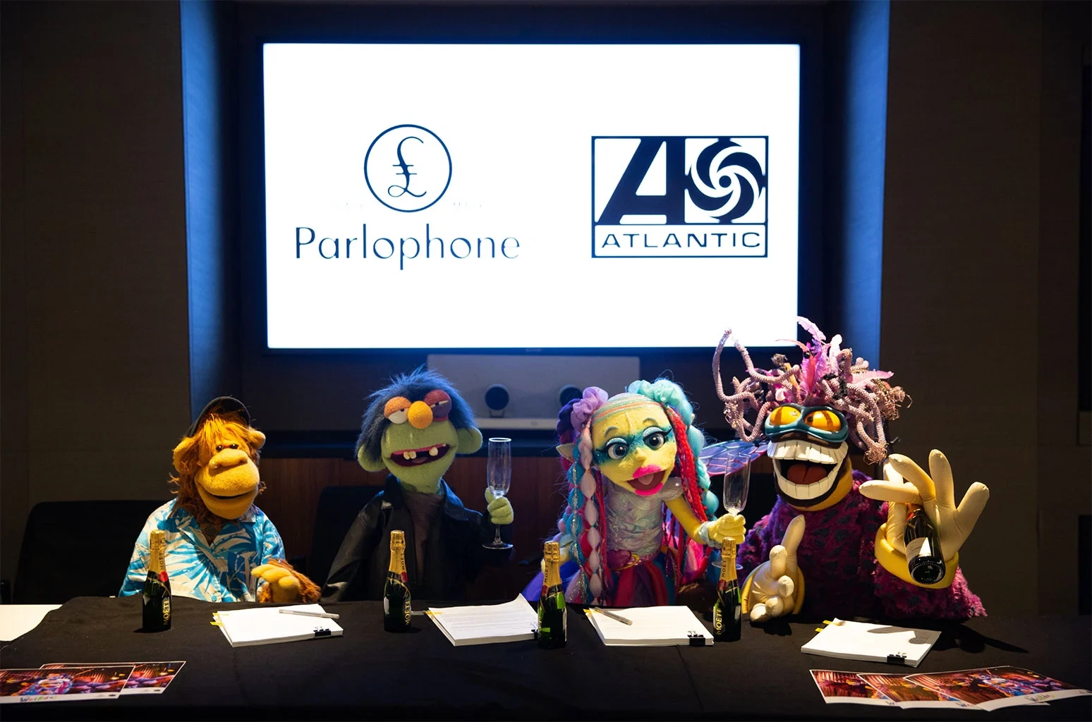 Helped by Chris Martin, The Weirdos have signed a “historic” contract with Coldplay record labels Parlophone and Atlantic on 7 June 2022. According to a statement announcing the band's deal, Bruce Cakemix described it as “the biggest step forward in human-alien relations since Close Encounters.” Coldplay also benefited from the deal, as they intend to release music that they would like more visibility through The Weirdos. Martin explained, “[...] We do have songs we want to bring some attention to, but with this we asked the Weirdos if they would do the song and front it and we would feature.”